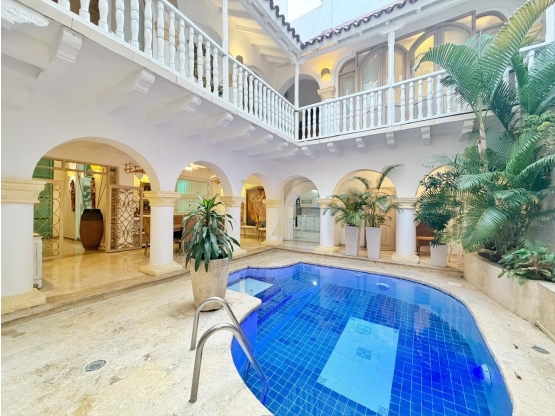 EN VENTA CASA CENTRO AMURALLADO DE CARTAGENA Área 440 mts2 construido. Área 190 mts2 de lote. Terraza. Piscina. 4 Alcobas. 5 Baños. Alcoba y baño de servicio.